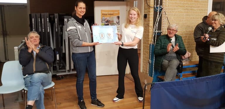 De sportkantine van Ping Pong Alkmaar heeft op zondag 20 november tijdens de eredivisiewedstrijden de topprestatiebadges voeding 1 en 2 van JOGG-Teamfit ontvangen. Ingrid van der Horst, kantinebeheerder, nam de badges namens de vereniging in ontvangst uit handen van JOGG-Teamfit coach Emma Swart. Leden, ouders en andere aanwezigen konden na de uitreiking zelf ervaren hoe lekker het gezondere aanbod in de kantine is.